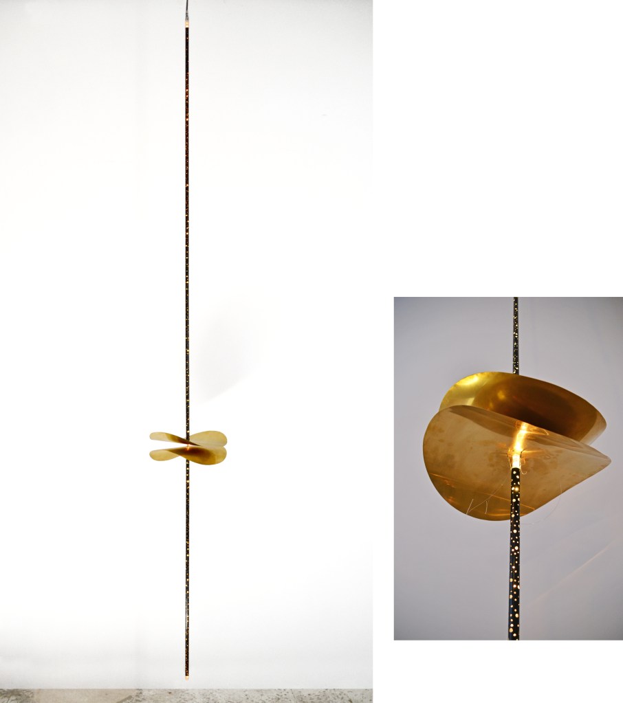 Lampara Fidler 2. Brass, copper, painted steel and walnut. Designed for Loewe (2016).