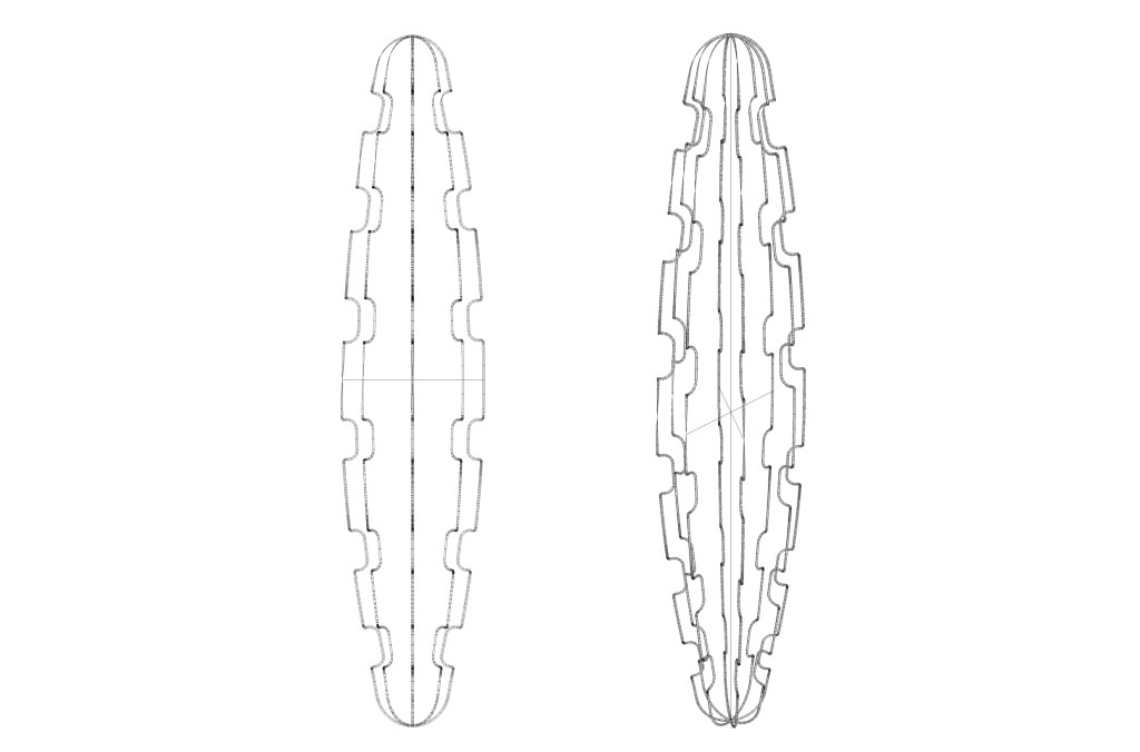 Ricketts’ Lantern (Hollywood, California, 2019) is inspired by the appearance of life forms from the ocean, such as cnidarians, cephalopod eggs, leptocephali, or microscopic larvae. These organisms often have translucent outer membranes, giving them an ephemeral appearance.