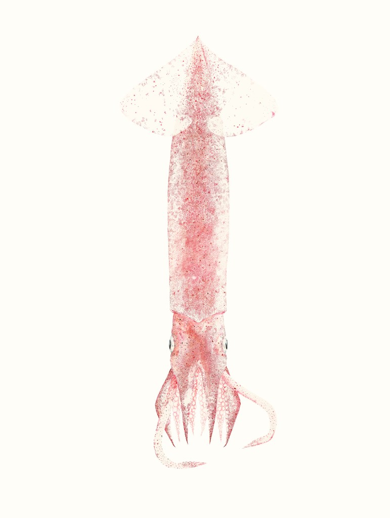 Watercolor from fixed specimens of Hyaloteuthis pelagica (dorsal view).